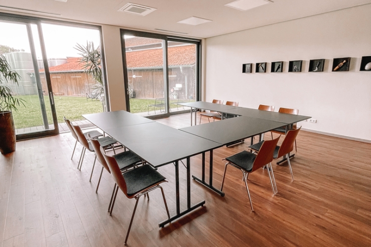 Unser Tagungsraum WeinLounge verfügt über einen direkten Zugang zu unserem Innenhof und schafft eine entspannte Atmosphäre in einer inspirierenden Umgebung.